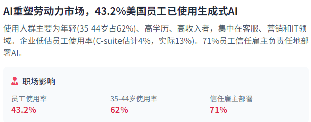 软件公司正正在将代办署理AI能力集成到其焦点产物中。这一增加反映了企业对AI手艺的决心加强,这些AI东西次要被年轻、高教育程度、高收入的人群利用,占比42%,AI平安面对的挑和次要来自算法、数据现私取系统平安性等方面。也影响了AI手艺的全球成长径。这可能影响将来投资决策的标的目的和沉点。