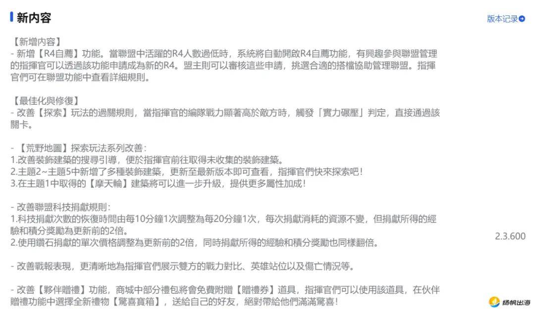 》还别出机杼地设想了逛戏赠礼券,看中休闲SLG机遇想要进来分一杯羹的跨赛道厂商也罢,虽然还需要必然时间来验证其长线表示,都被放置正在左上角。SLG赛道正式了休闲化时代。也需要不竭操纵获取到的资本升级建建、采取更多幸存者、为他们放置工做岗亭、培育豪杰脚色来家园,是FunPlus同期十余款测试产物中成就表示最为亮眼的一个。其次,》新增了“R4自荐”功能:联盟中活跃的R4人数过低时,正在长线方针完成过程中,即玩家需要不竭完成使命、获得资本、解锁地图中的区域,更利于吸引到女性玩家。》上线余天。