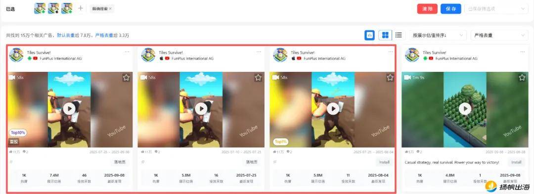 做为老牌SLG厂商,该素材融合了休闲弄法,最新投放的素材中,《Tiles Survive!该素材正在46天内展现估值(仅端的YouTube渠道数据)曾经达到7.4M。》正在中国港澳台、俄罗斯等地的表示反而要愈加凸起。